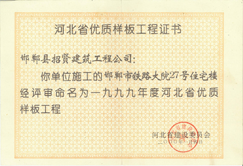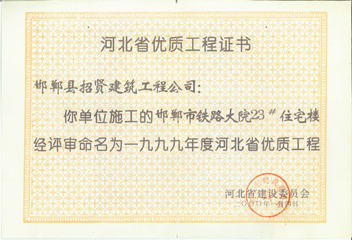 1999年度河北省优质工程(铁路大院23#27#住宅楼)
