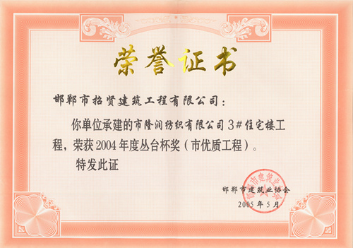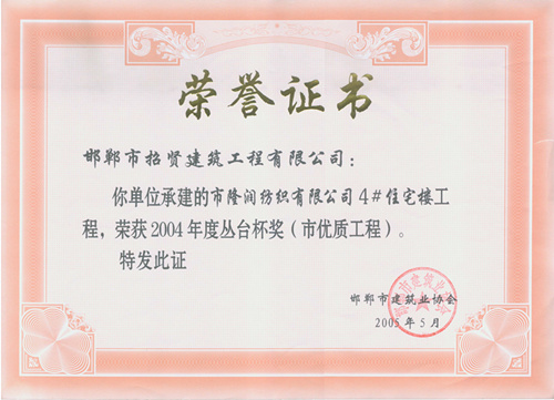 2004年度邯郸市“丛台杯”奖(市隆润纺织有限公司3#4#楼)