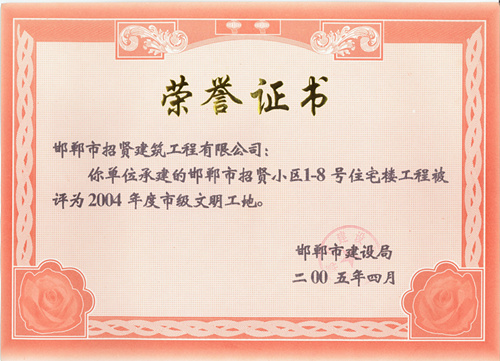 2004年度邯郸市文明工地(招贤小区1-8#楼)