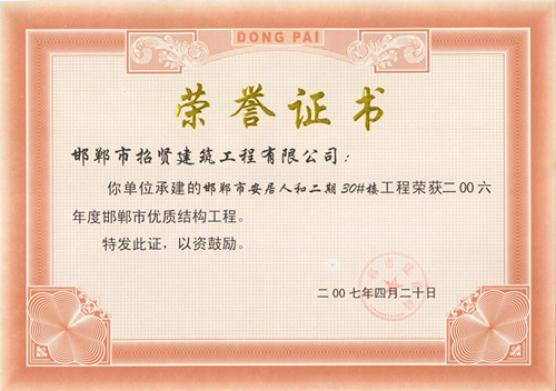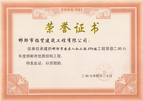 2006年度邯郸市优质结构工程(安居人和29#30#楼)